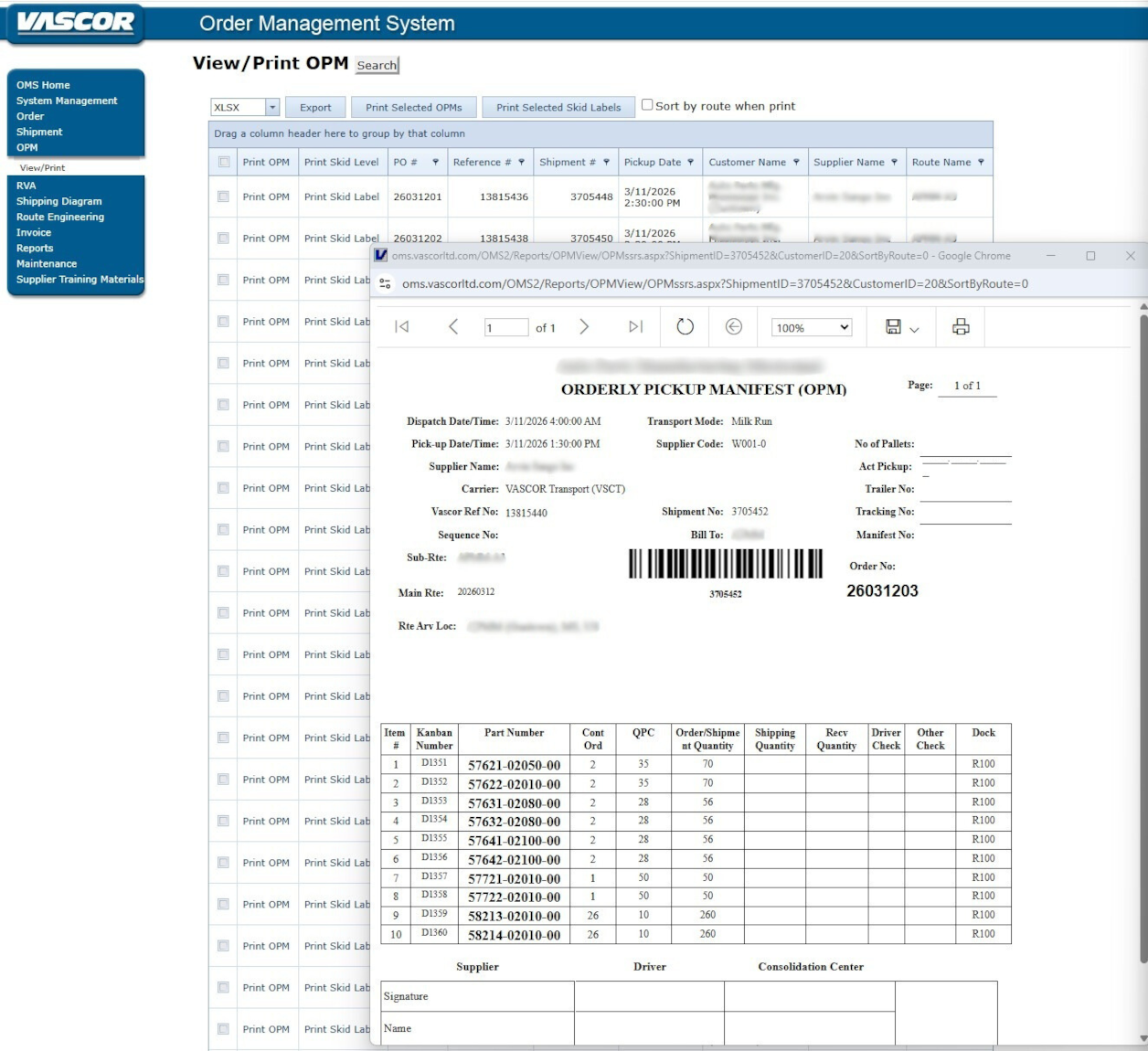 A dedicated portal for parts order management enabling suppliers to file shortages, submit ASNs, and print delivery documents — reducing overhead while improving supply chain agility.